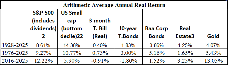 Aswath Damodaran at NYU publishes this yearly update of returns. Note that Real Estate is for Residential based on Case-Shiller data.