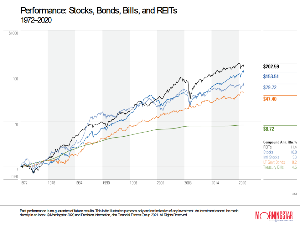 Real Estate exposure can be a critical component of a well-diversified portfolio. The best way to obtain exposure to this market is through REITs, which over the past 48 years have outperformed the broader equity market.